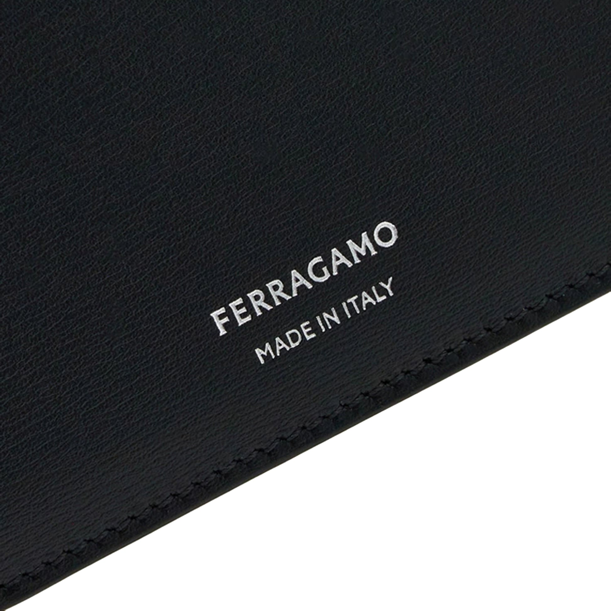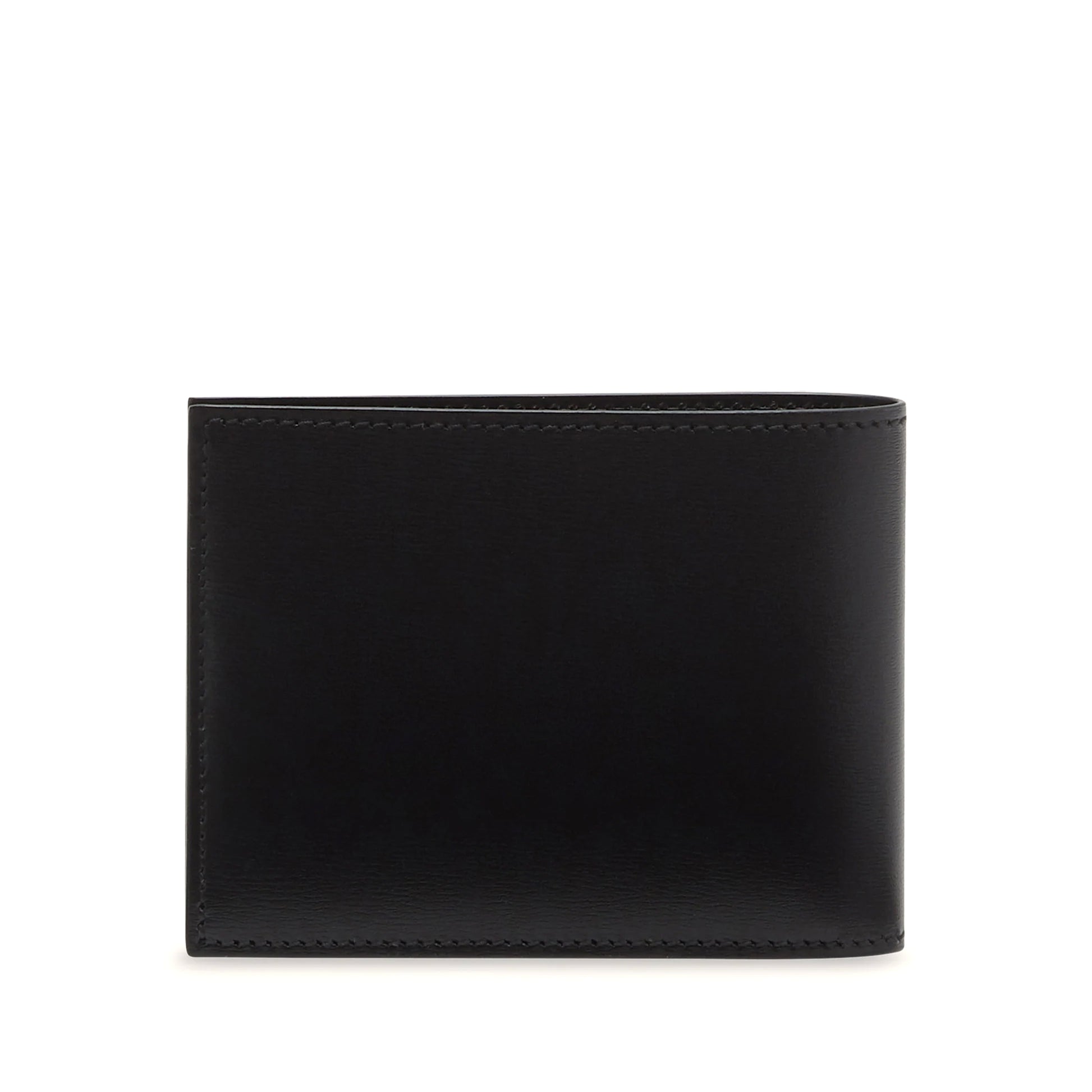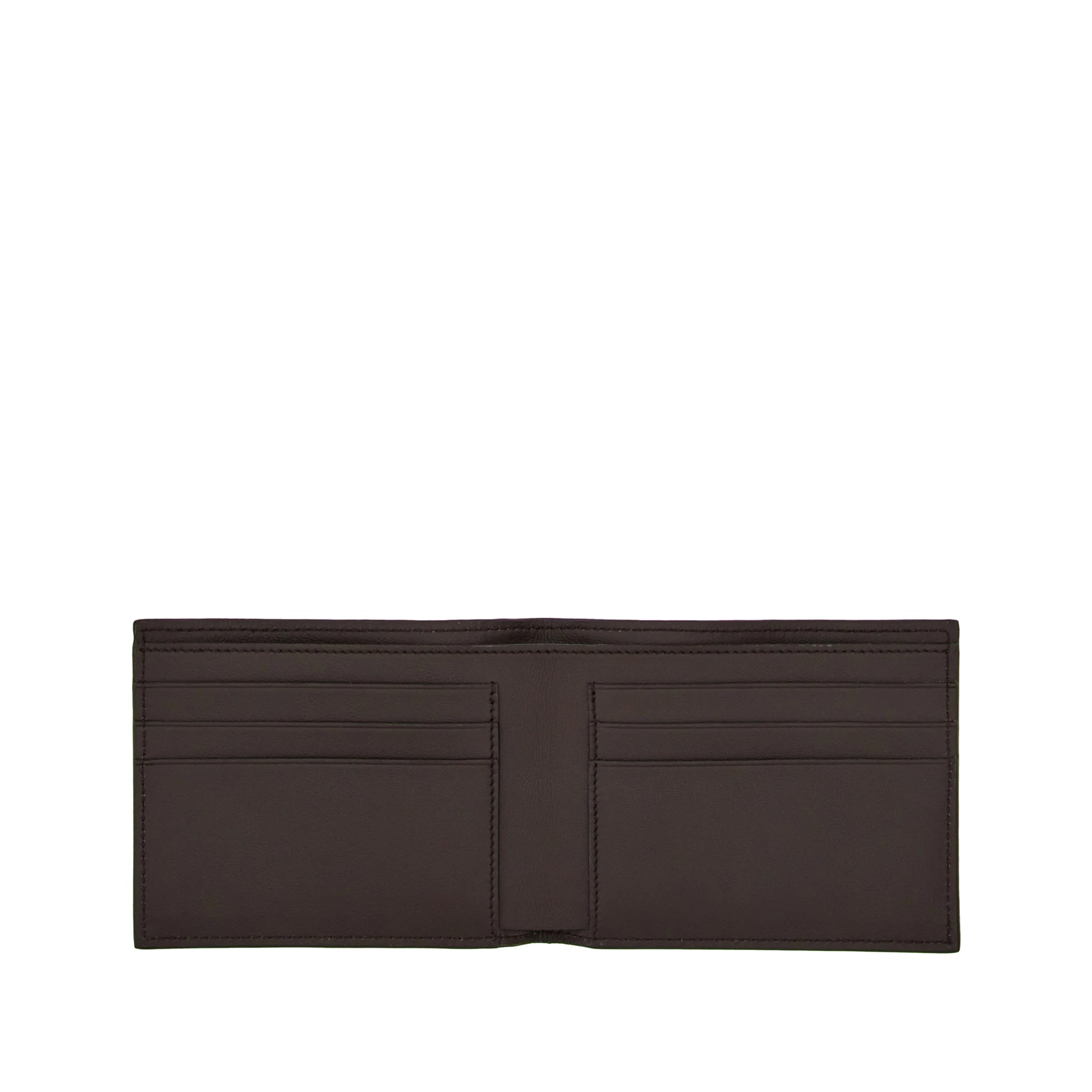 wallet crafted from palmellato calfskin with card slots and bill and document pockets. It features a small silver logo on the front.