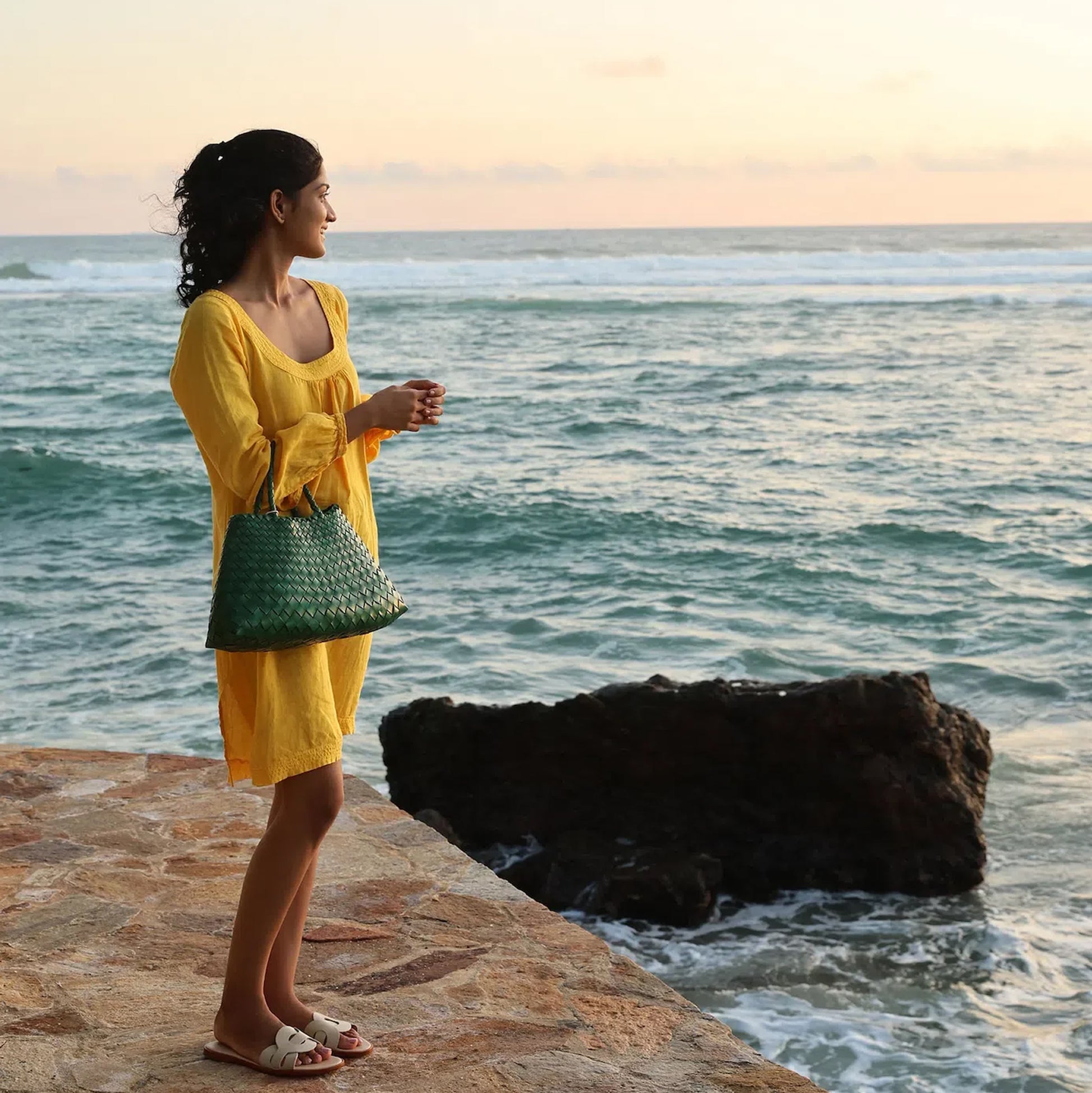 Our Santa Croce bag is formed of irregular leather weaving straps that taper towards the brim, creating a practical yet elegant shape that’s perfect for running around the city—taking your outfit from day to night. Remaining true to traditional basket weaving techniques, the Santa Croce comes unlined and has an open top.