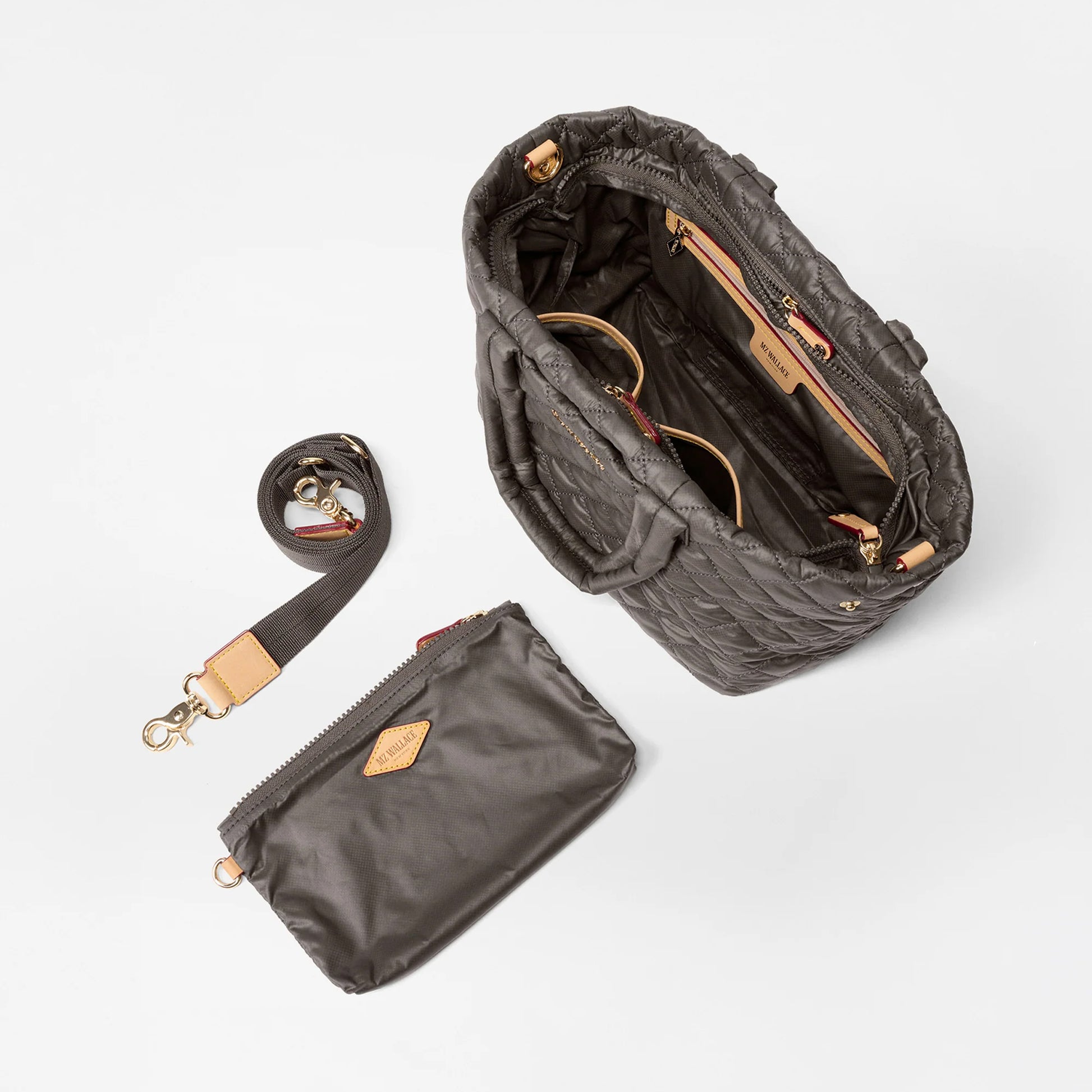 Like her big sister, the Small Metro City Tote has two outside slip pockets, two zipper collar pockets, and 6 interior pockets. Smaller than the Metro City Tote, yet suprisingly roomy.
