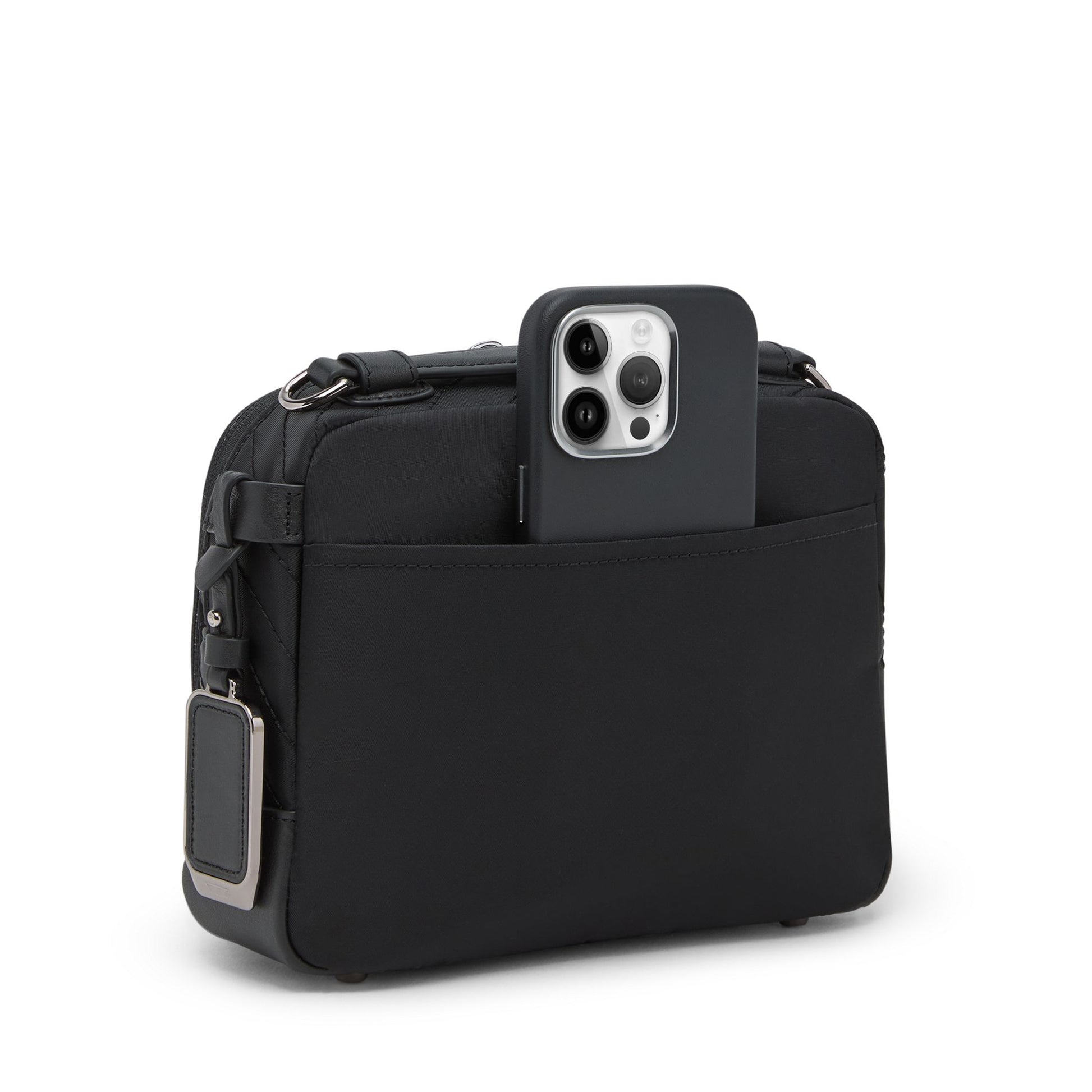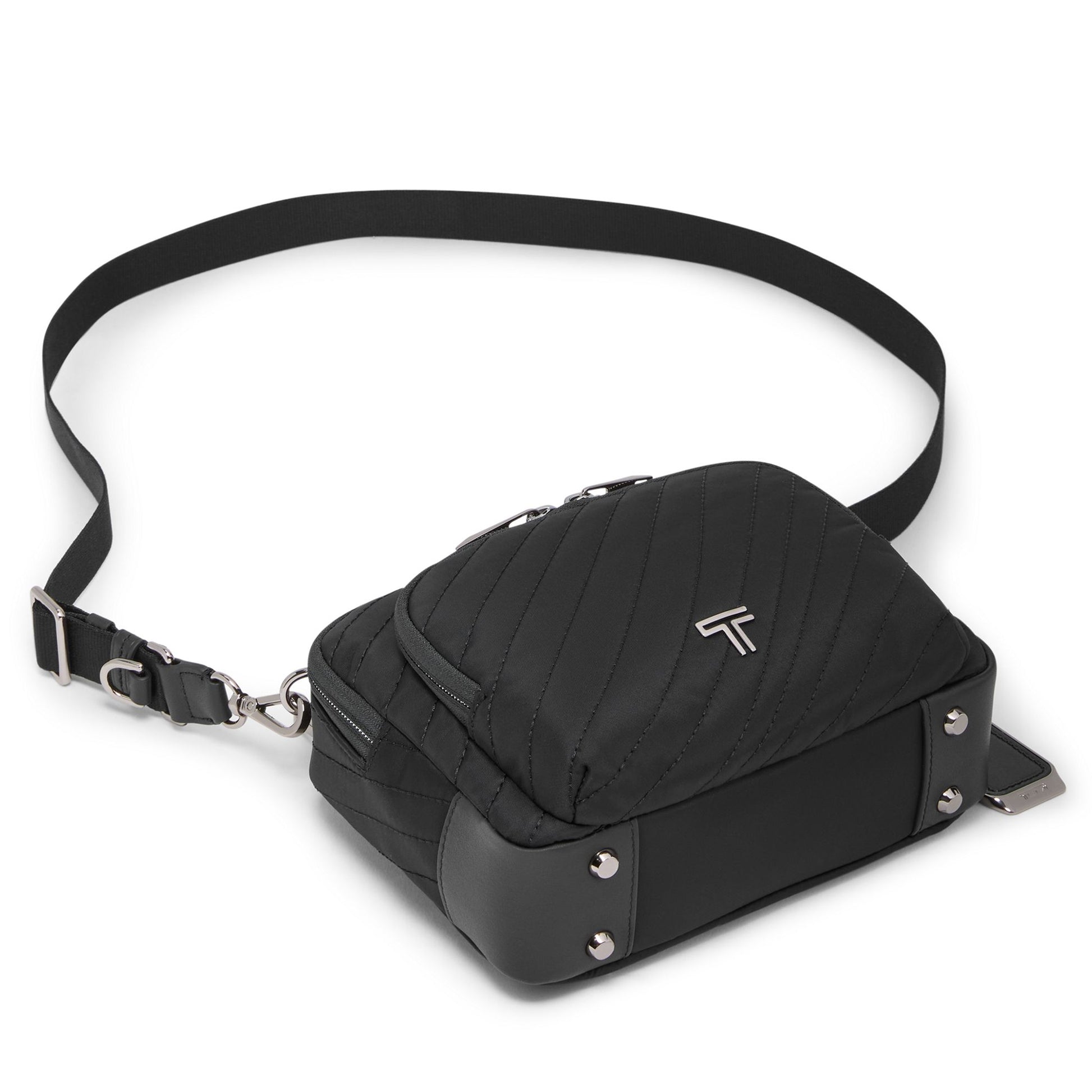 Meet the Teghan Crossbody, a classically compact style. This casual carry features a dimensional quilted pattern on black nylon, accented with silver hardware.